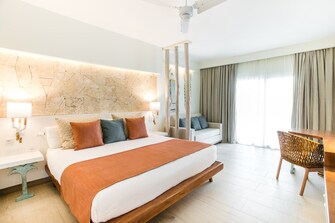 The Seafront Premium Suite allows you to enjoy a panoramic view of the Dominican Caribbean from your king-size bed. The waves and palm trees will be the first thing you see when you wake up in the morning. You’ll also have access to a private beach area for VIP guests like you, in addition to many other perks, such as premium wines, sparkling wine and a cheese board to welcome you, restaurant reservation priority, and much more in this adults-only room.
