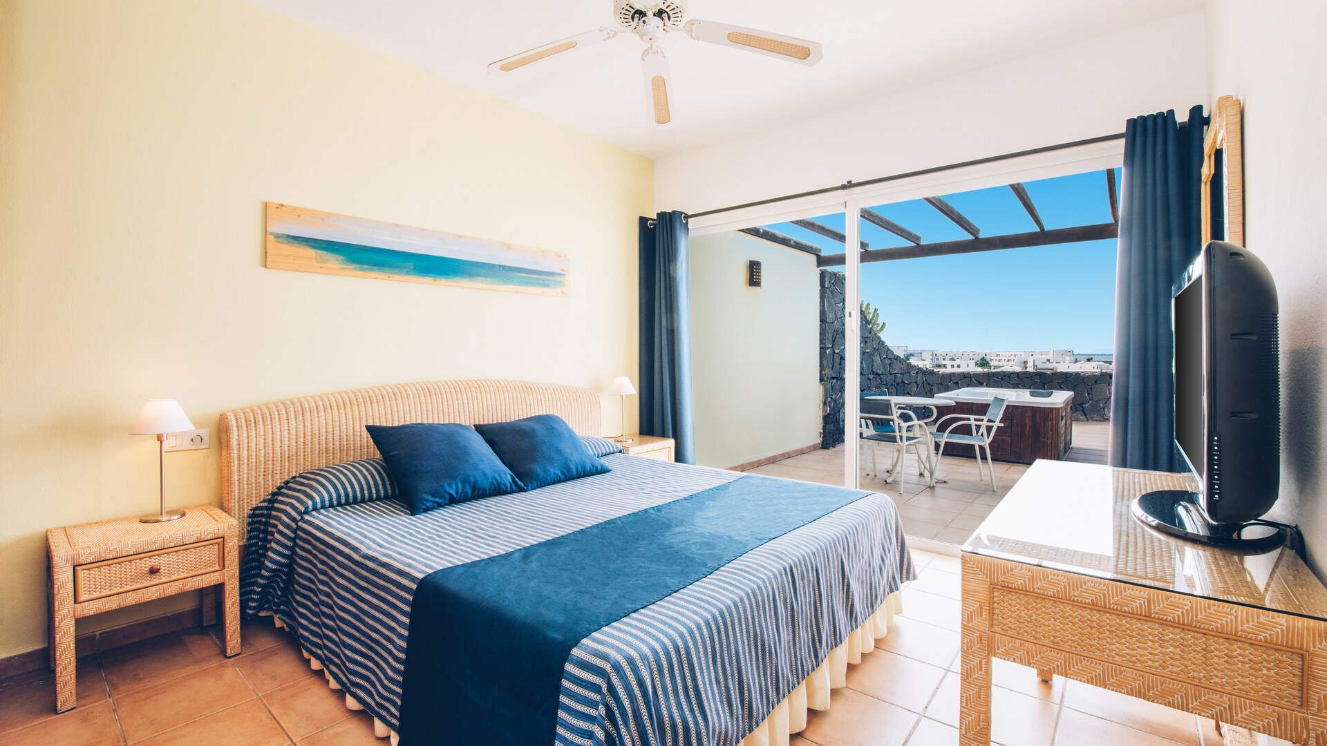 What are you looking for in a family holiday? Just next to Playa Blanca in the south of Lanzarote, Iberostar La Bocayna Village offers you 48 bungalows that measure more than 80 square metres, some with a Jacuzzi and BBQ. Space and comfort in a calm and pleasant area, perfect for everyone to unwind. It is surrounded by services and very close to the beach. Look out your window and see the sea from one of the most fascinating islands in southern Europe, with an average year-round temperature of 22ºC. The hotel is also located just a half-hour from Timanfaya national park, where you can get up close to the world of volcanoes.